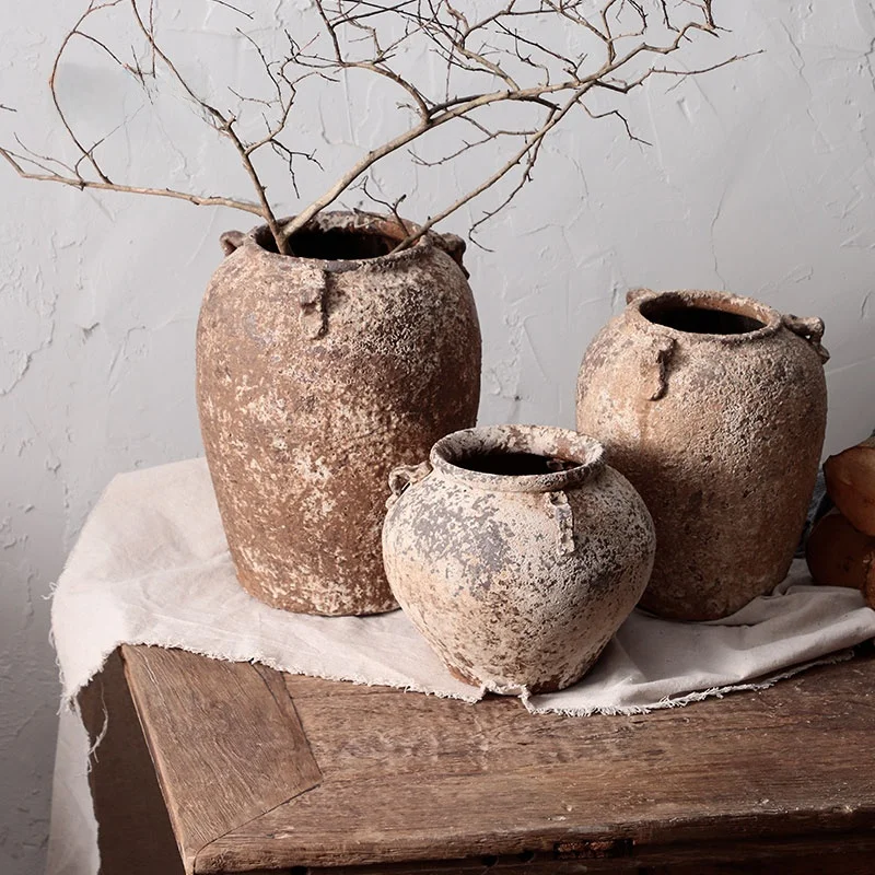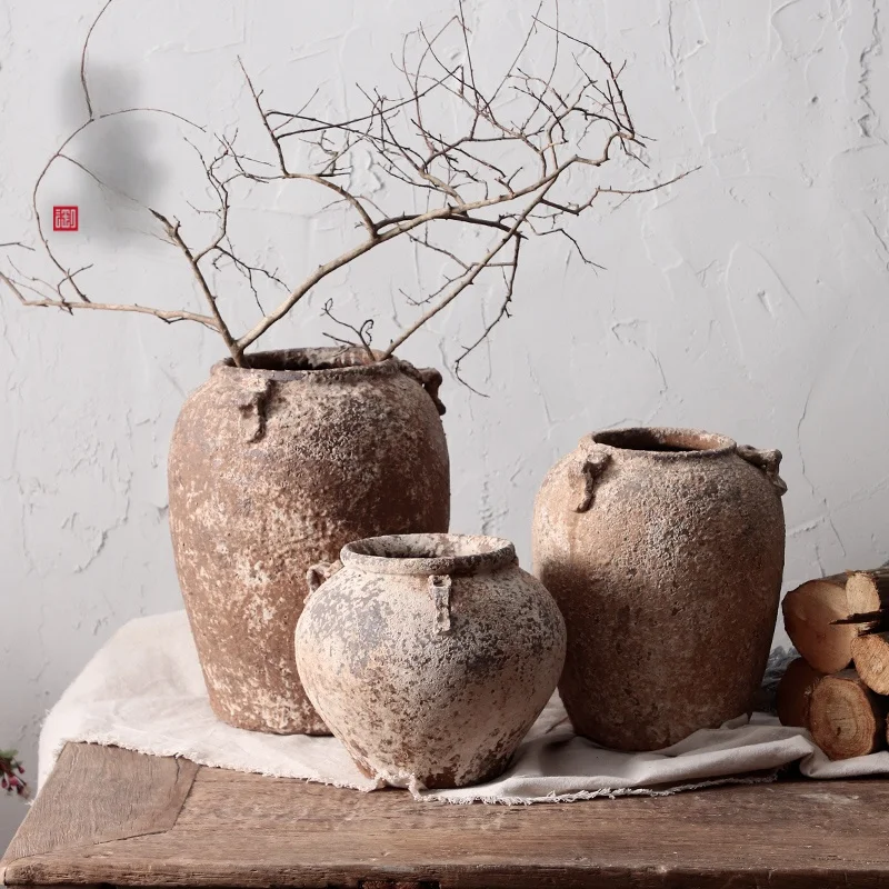 Retro Handmade Terracotta Flower Vase Succulent Pot Clay Jar Dried Flower Vase Japanese Tea Room Decorative Home Accories