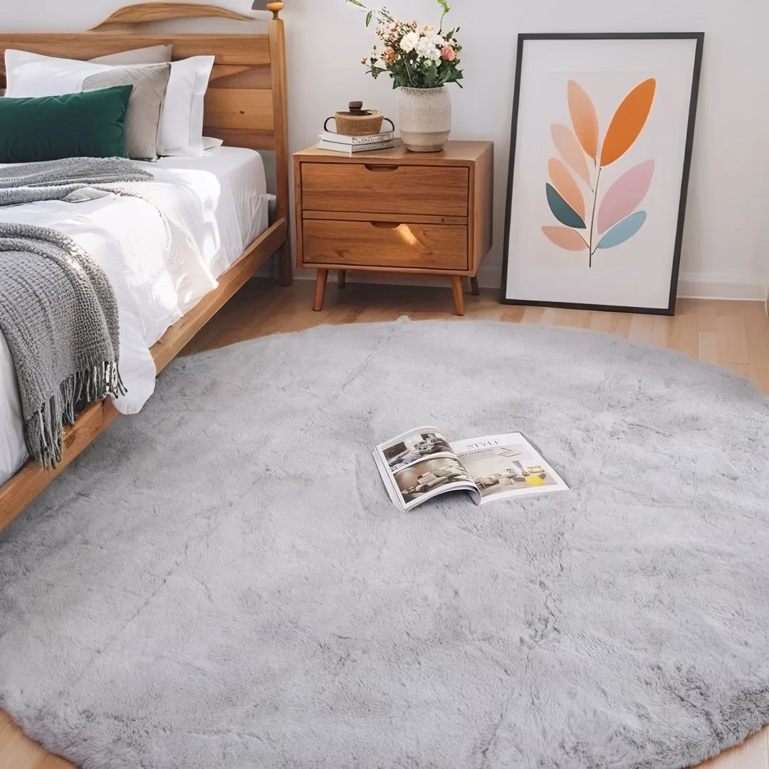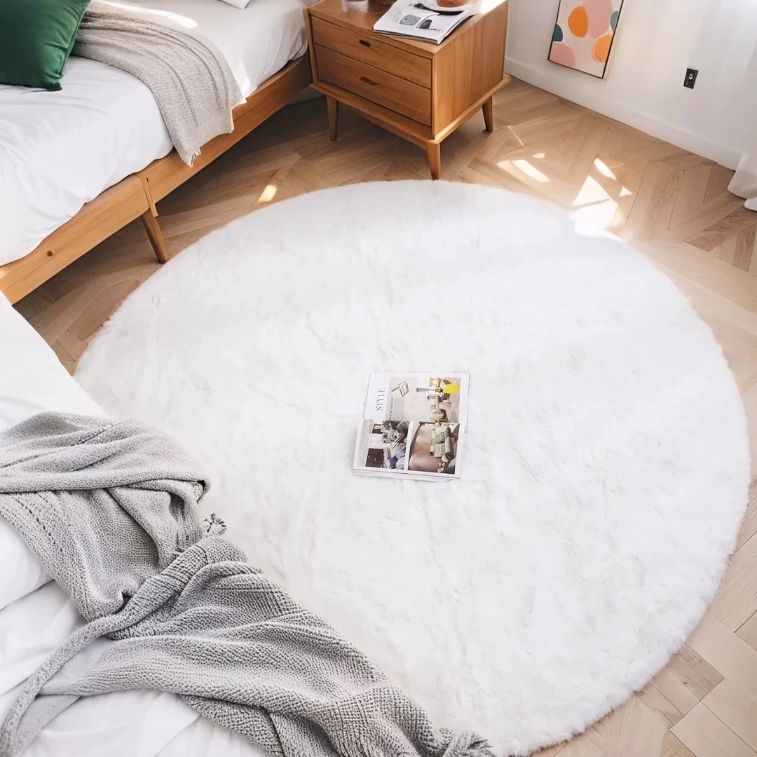 Transform your space with the Plush Black Faux Rabbit Fur Rug. Crafted from 100% acrylic, this round rug offers a soft, cozy feel underfoot. Its minimalist design complements any decor style, making it perfect for living rooms, bedrooms, or commercial spaces. Washable and foldable for easy care, choose from multiple sizes to fit your needs.