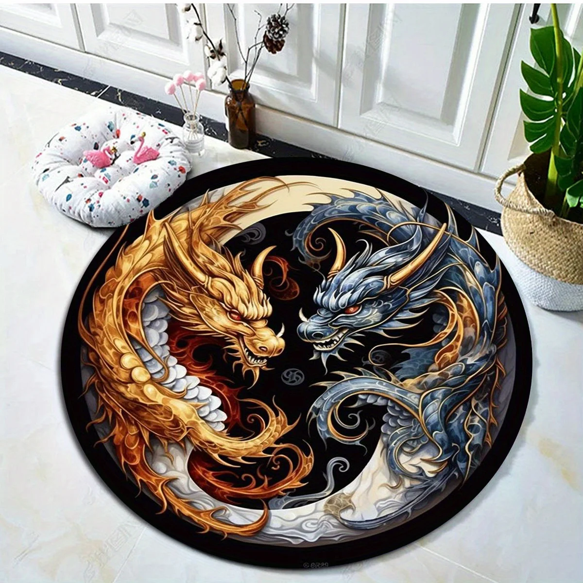 Easy to clean, this mat saves you time and effort. Simply toss it in the washing machine or give it a quick hand wash, and it will look as good as new. Its stylish print adds an elegant touch to any room, making it not just a functional item but also a decorative piece.