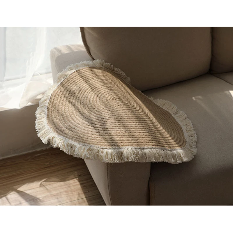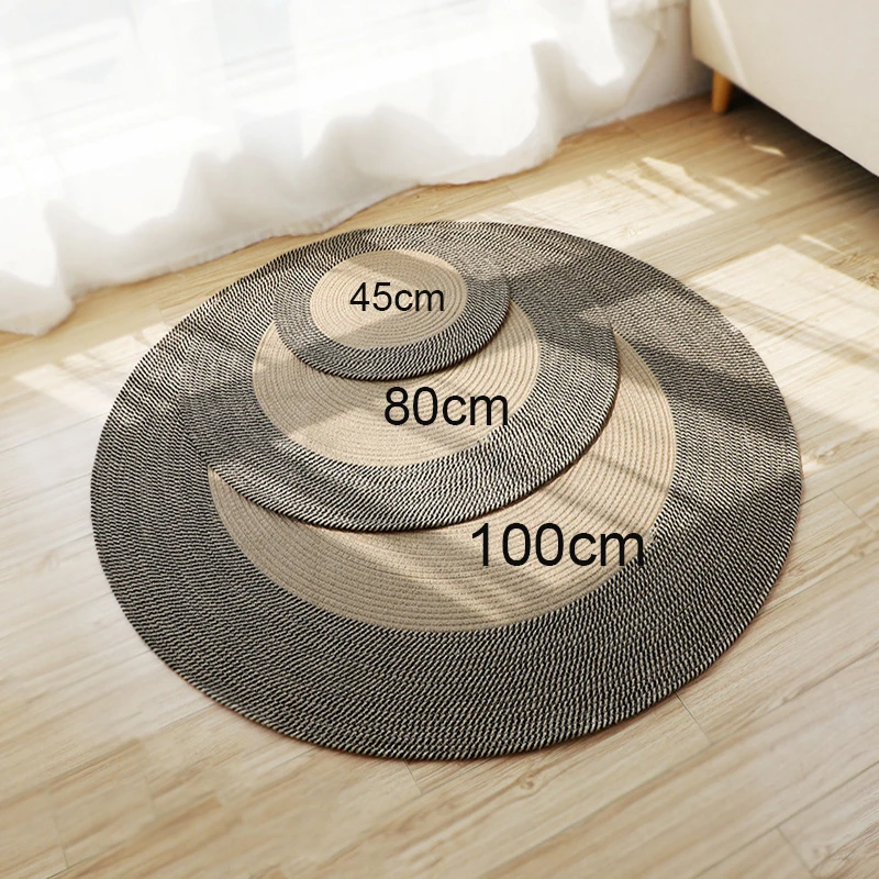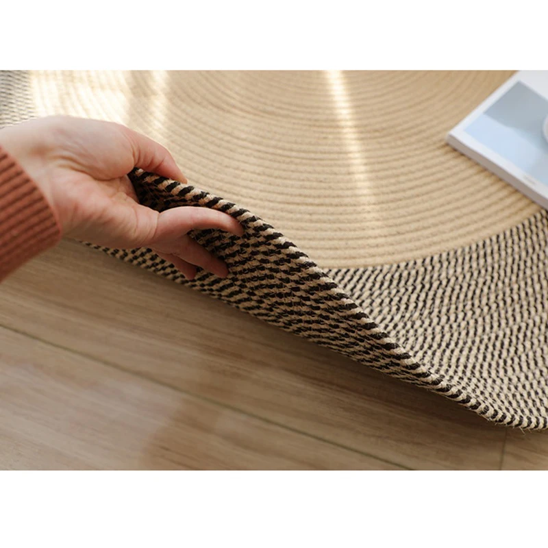 Handmade round woven rug crafted from 100% natural sisal with a vintage tassel design. Perfect for living rooms, bedrooms, or studies, this durable, machine-made carpet adds rustic charm and comfort while being easy to hand wash. Ideal for modern, pastoral home decor.