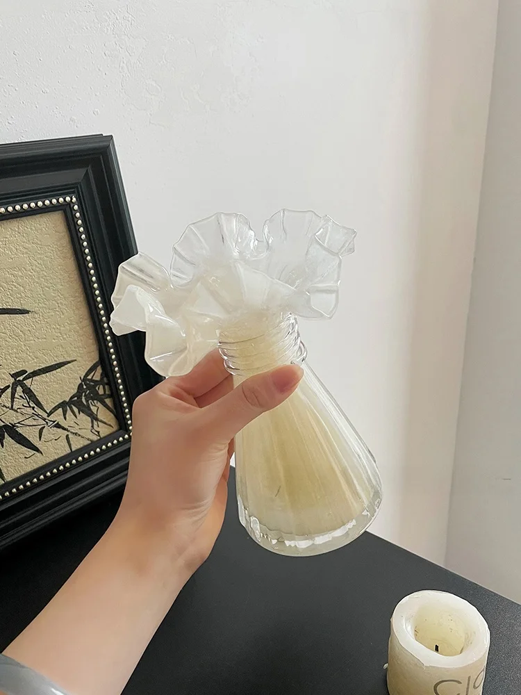 Ruthenium Glass Lace Skirt Vase French Sle Small Size Tabletop Flower Pot for Home Decor Bedroom Living Room Dining Room