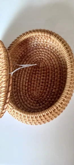 Handwoven rattan storage basket with lid offers stylish organization for home or office. Compact, durable, and perfect for keeping essentials tidy while adding a natural, minimalist touch to any space.
