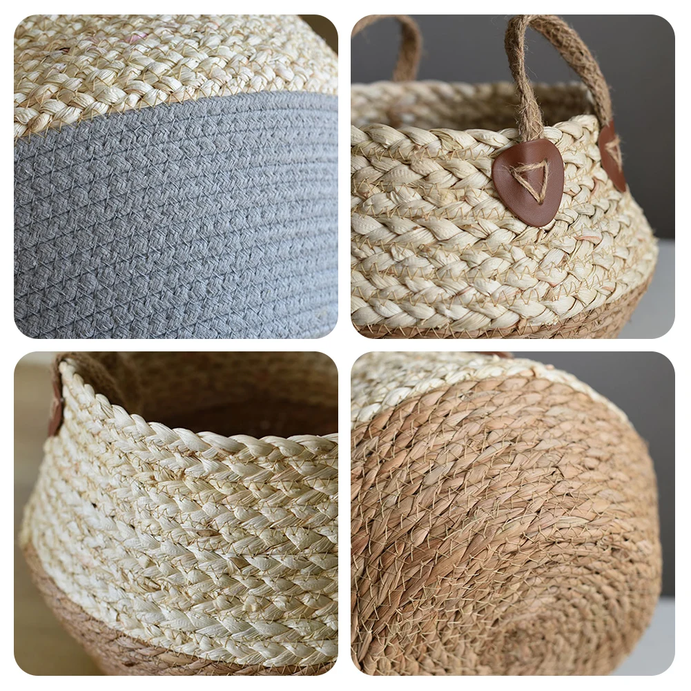 Household Straw Weaving Flowerpot with Handle |