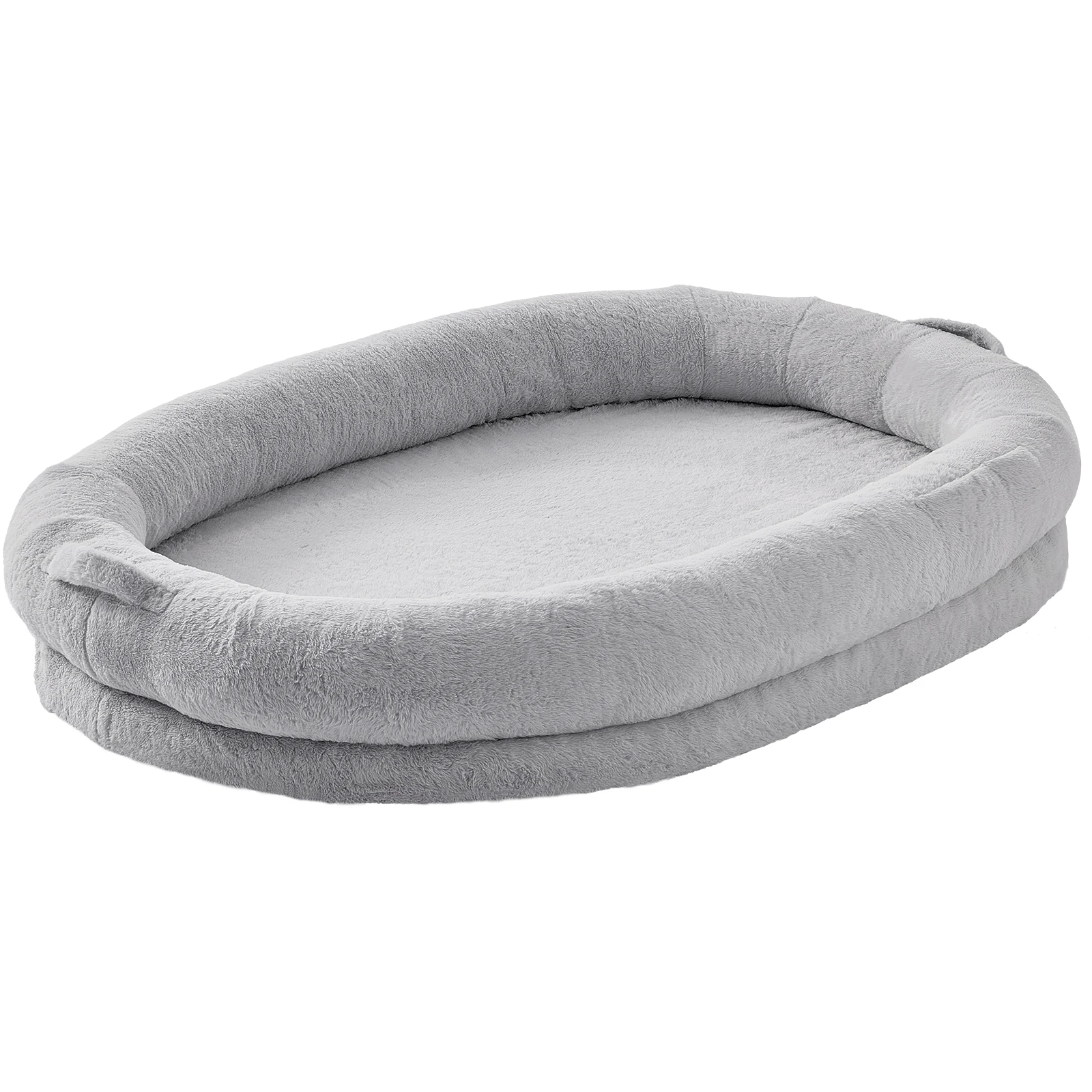 SucceBuy Human Dog Bed Human Dog Bed for Adult Human Size Dog Bed with Washable Faux Rabbit Fur Cover Egg Orthopedic Foam Grey