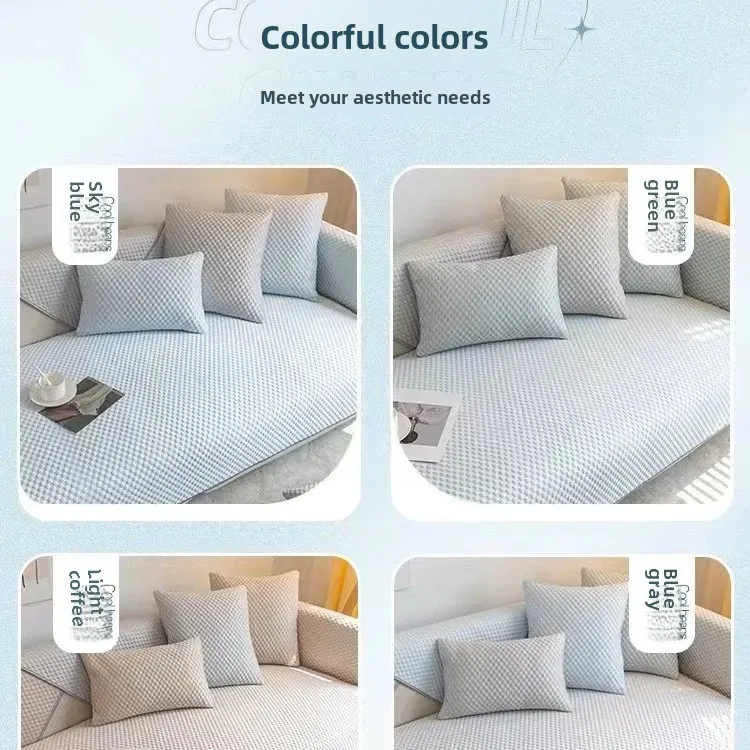 Transform your living space with our Summer Ice Silk Anti-slip Full Cover Sofa Cushion. Available in various sizes and soothing colors, it ensures comfort and style for all seasons. The cooling fabric and anti-slip design provide a cozy, secure fit, perfect for any sofa. Upgrade your decor effortlessly today!