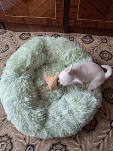 A good soft bed. As described by the seller. Suitable size for a 6kg cat. There is a slight smell, possibly from the plastic packaging. Fast delivery. My cat liked it. I'm thinking of ordering more.