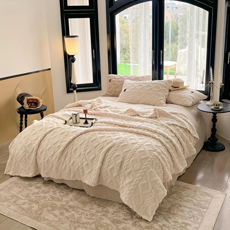 Ultra Soft Taffeta Luxury Throw Blanket Lightweight Multi Purpose for Bed Sofa Travel Napping Cozy Warm Plush Cream White Gift