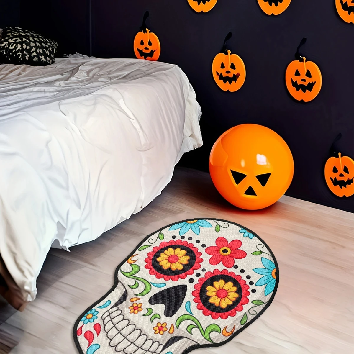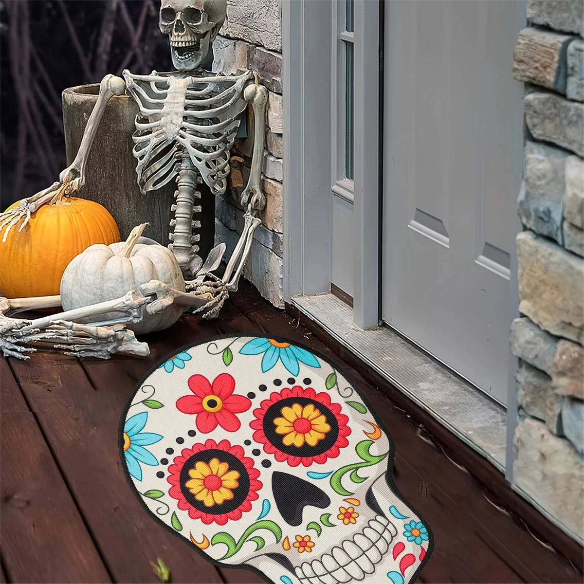 VIKAMA Halloween Skull Floor Mat for Door, Kitchen Water Absorbing Floor Mat, Living Room Rug, Durable Carpet Decor for Home
