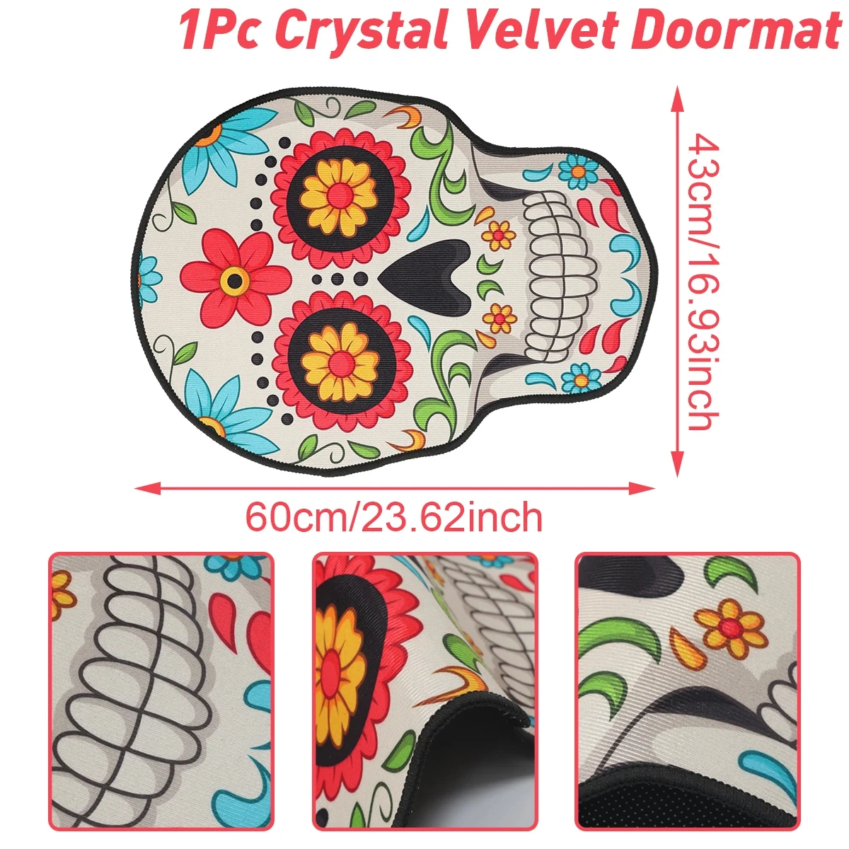 1 review for VIKAMA Halloween Skull Floor Mat for Door, Kitchen Water Absorbing Floor Mat, Living Room Rug, Durable Carpet Decor for Home