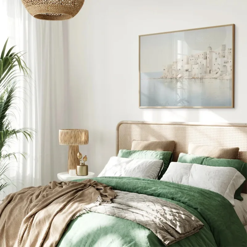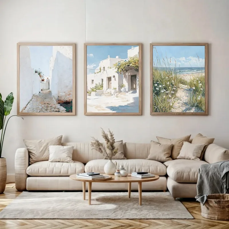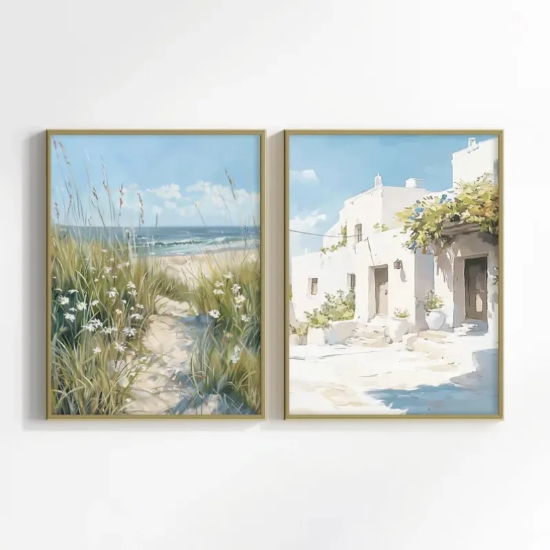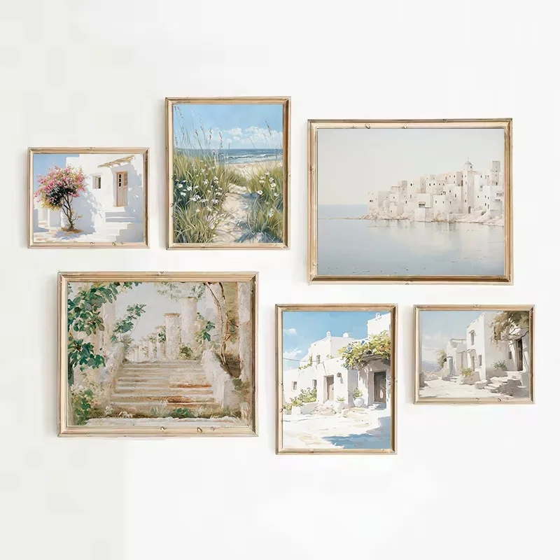Vintage Rustic Greek Village Architecture Coast Landscape Poster Canvas Painting Wall Art Pictures Home Interior Decor