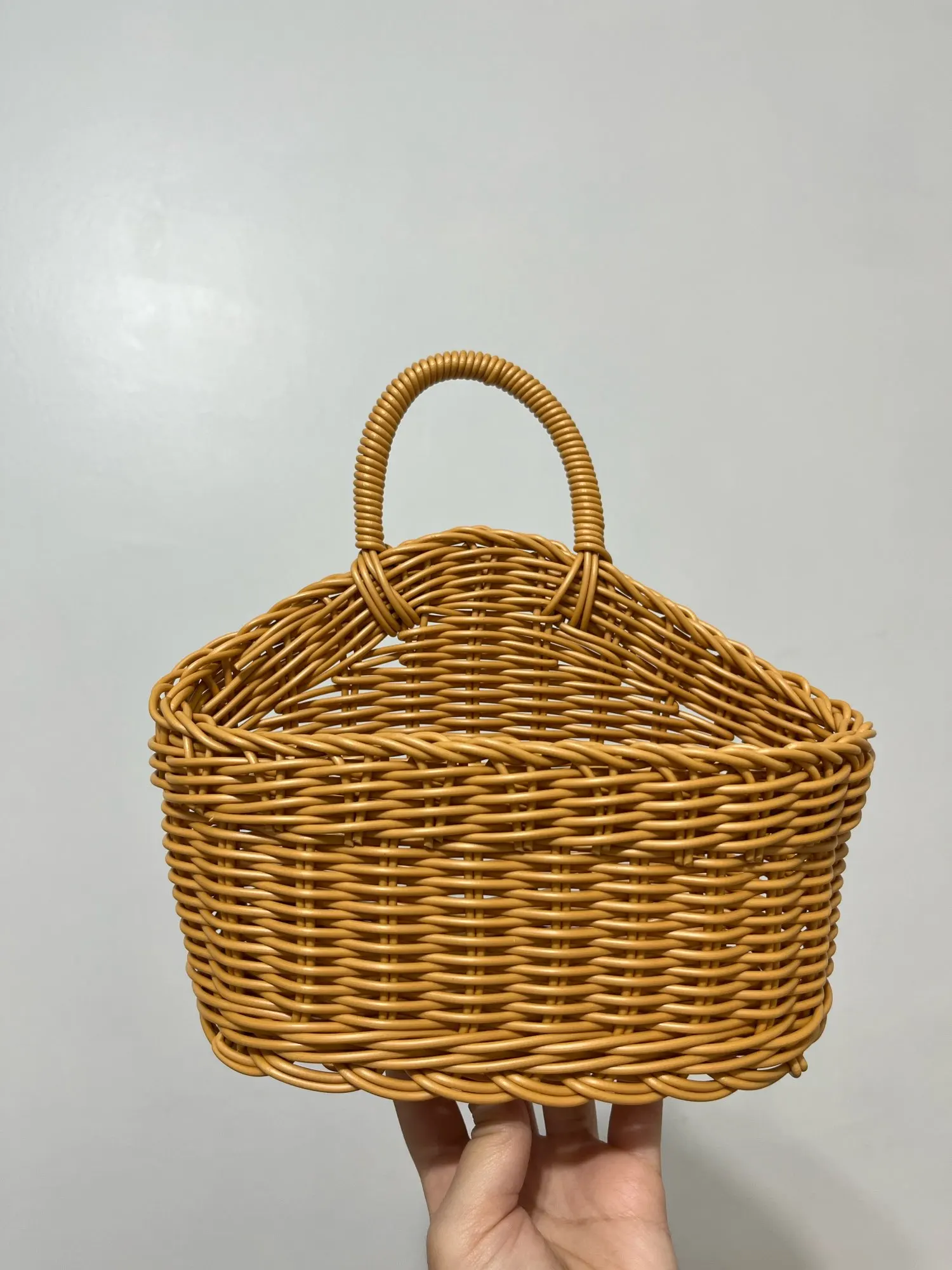 Wall Mounted Vegetable and Fruit Basket, Simulated Rattan Hanging Basket, Plastic Wall-mounted Hanging Basket, Home Decoration