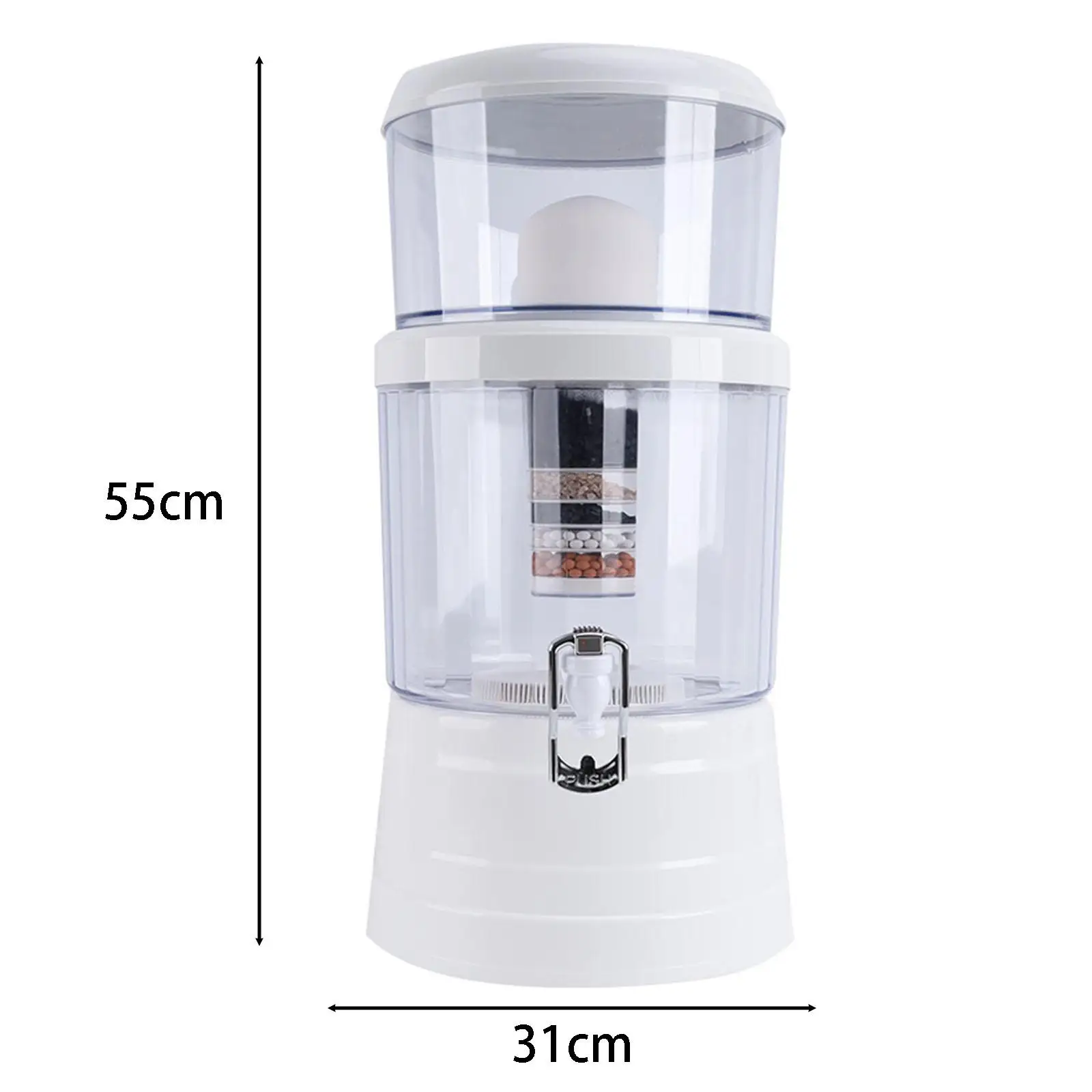 The 16 L capacity means less refilling and more time enjoying pure water. Place it where it is most convenient for you, whether in the kitchen for cooking or in a common area for easy access to fresh water throughout the day. Its straightforward design ensures that clean water is always a simple pour away.