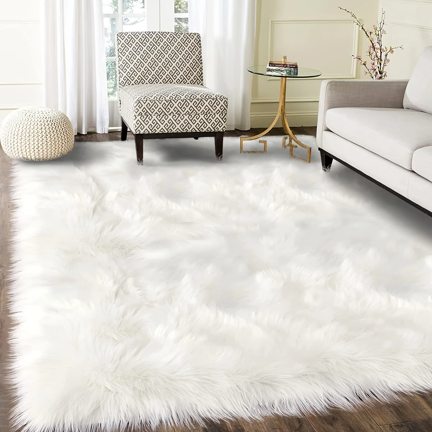 Luxurious White Faux Fur Sheepskin Rug for Chic Home Elegance