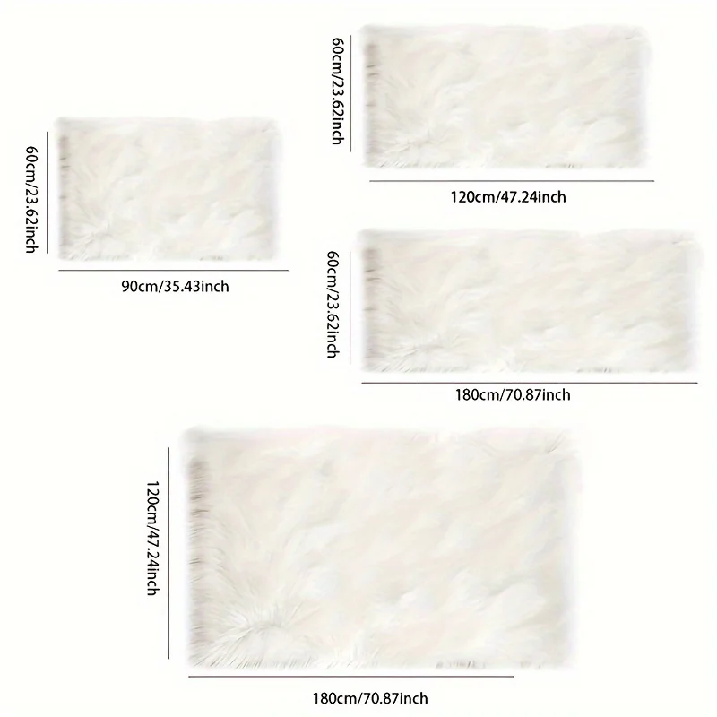 Transform your space with our luxurious white faux fur sheepskin rugs. Available in multiple sizes, these fluffy, rectangular rugs add a touch of elegance to any living room or bedroom. Soft and cozy underfoot, they enhance your home decor while providing warmth and comfort. Elevate your style effortlessly.