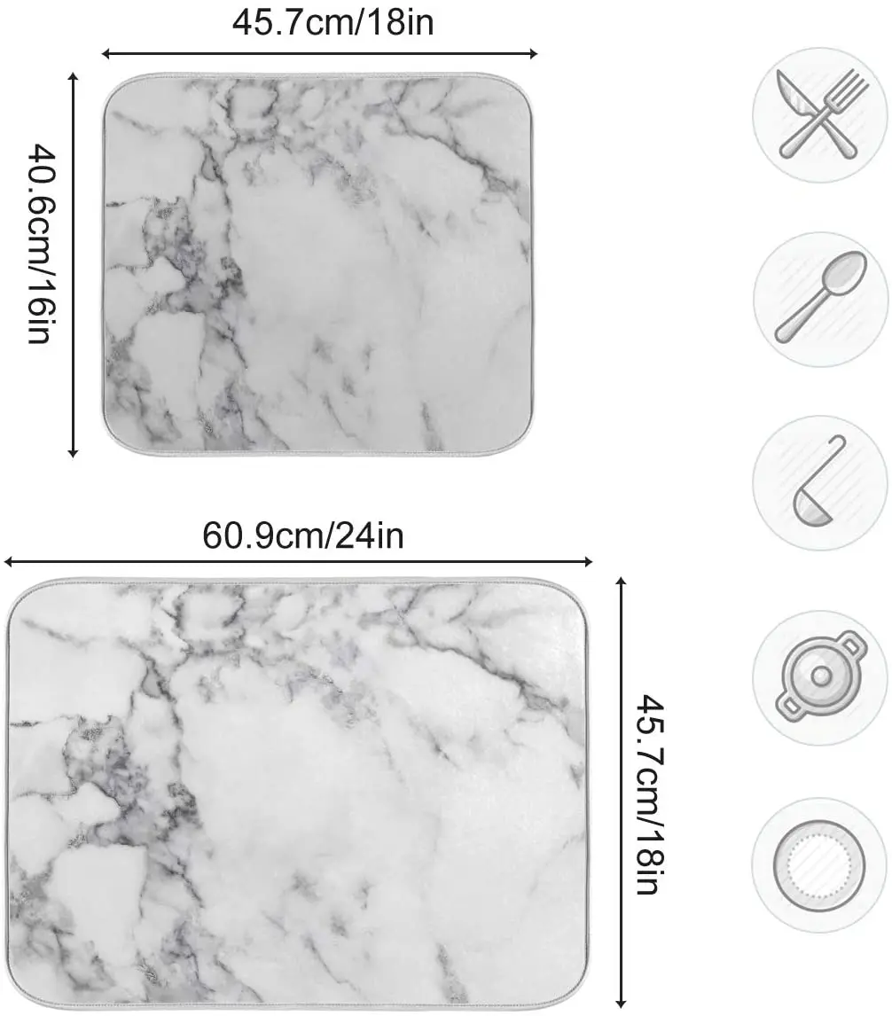 Introducing the White Marble Microfiber Dish Drying Mat, a stylish and functional addition to your kitchen. Designed to enhance your dish drying experience, this mat combines elegant aesthetics with practical features, making it an essential kitchen linen item for every home.