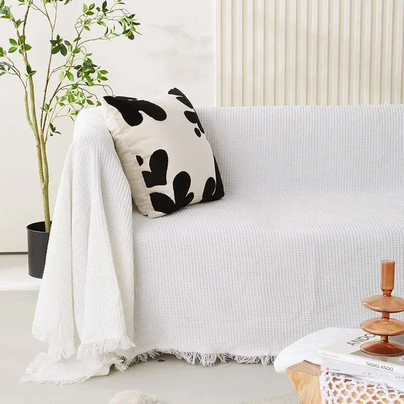 Woven Cotton Sofa Cover Blanket White Grey Sofa Towel for Living Room Furniture Decor Tapestry Couch Cover