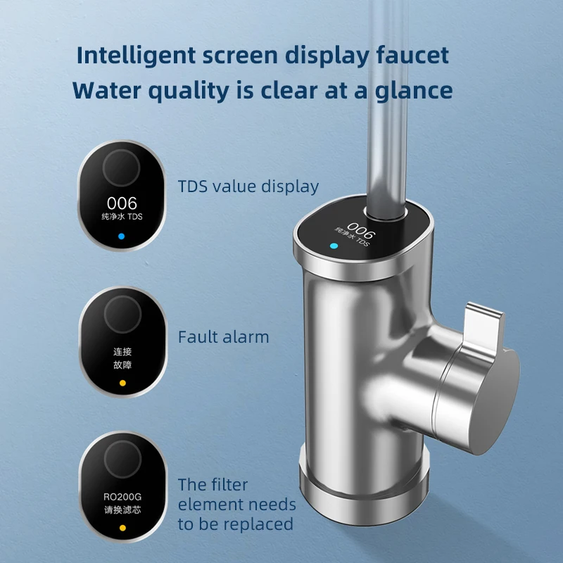 The faucet is equipped with an intelligent screen display. It doesn’t need to open the cabinet. Just open the faucet to know whether the water quality and filter element need to be replaced. The elders in the family can also operate it conveniently.