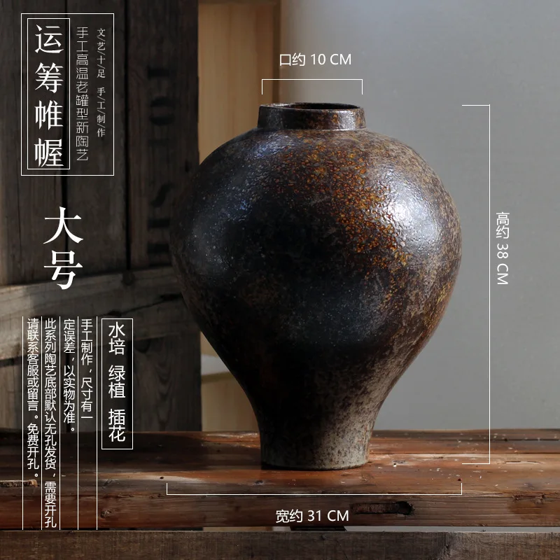 Jingdezhen Zen ornament large rough pottery jar handmade flower arrangement retro nostalgic ceramic vase