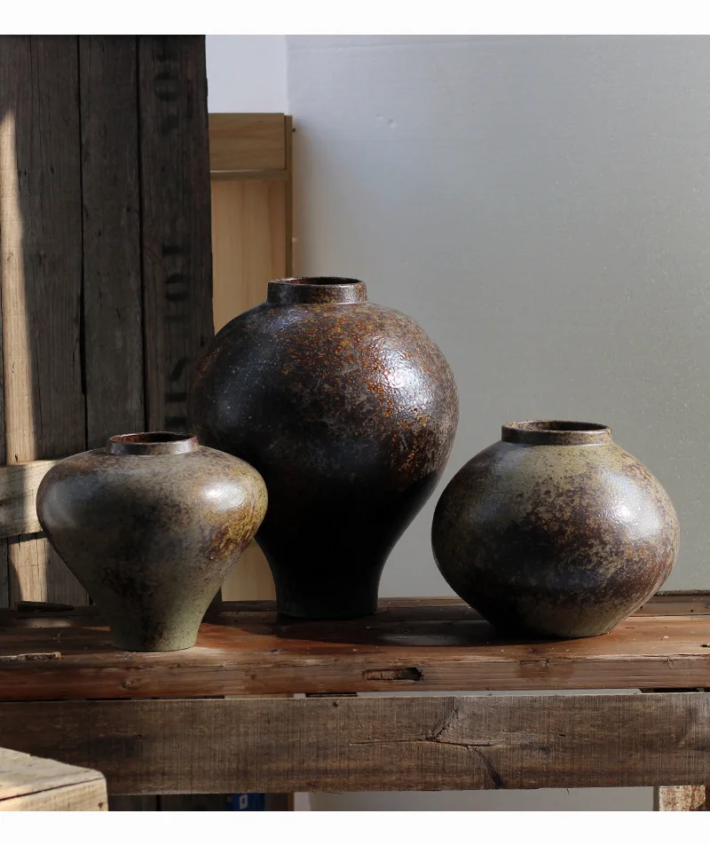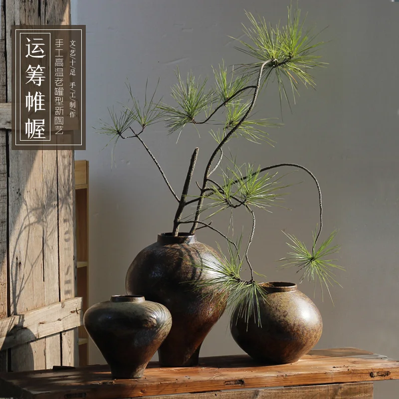 Wabi-Sabi Style Zen Arrangement Rough Pottery Jar Handmade Dried Flower Arrangement B&B Hotel Vintage Hydroponic Ceramic Vase